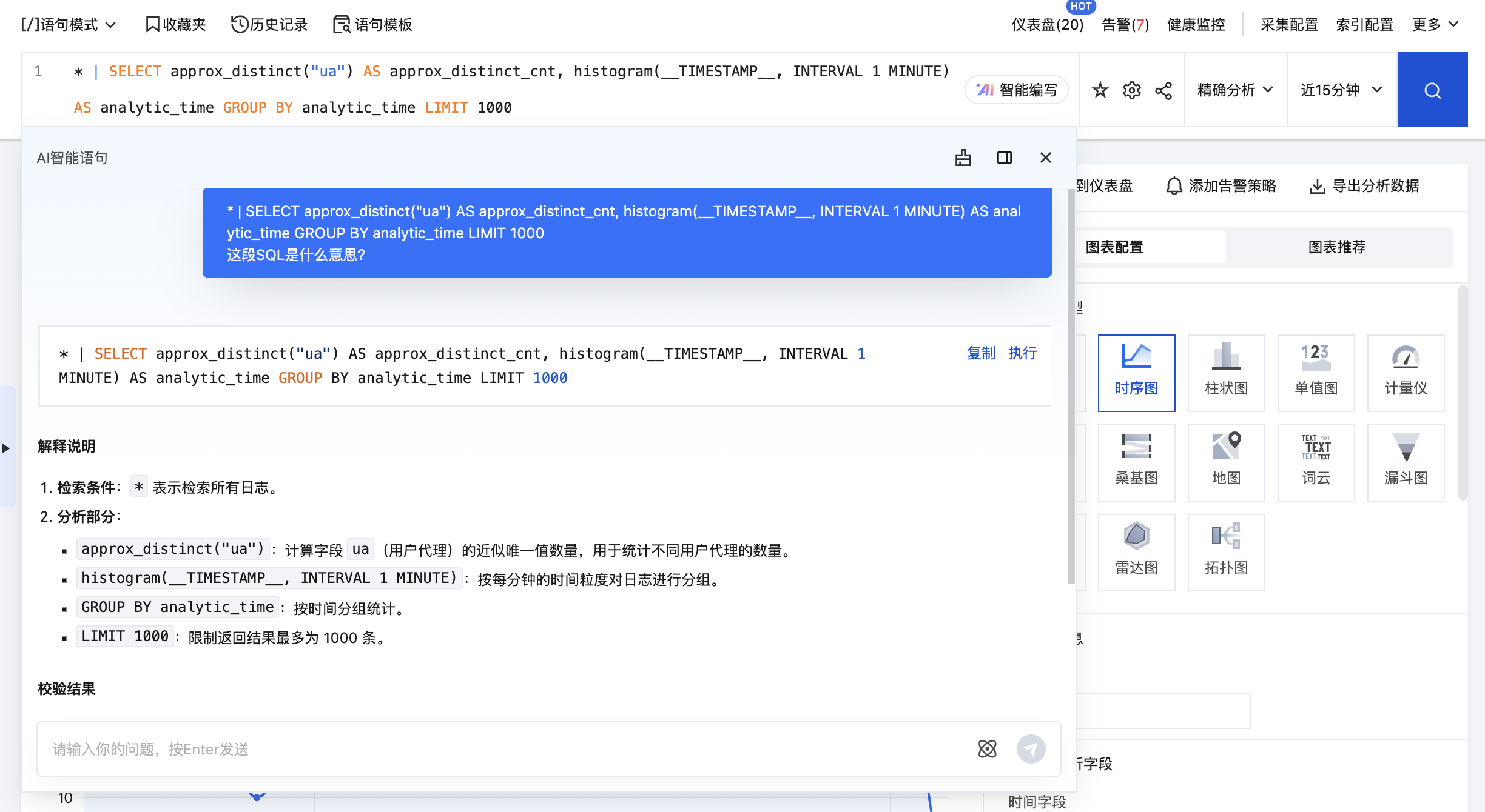 也可填写其它问题,例如解释 SQL 语句含义或探索更多日志分析角度。