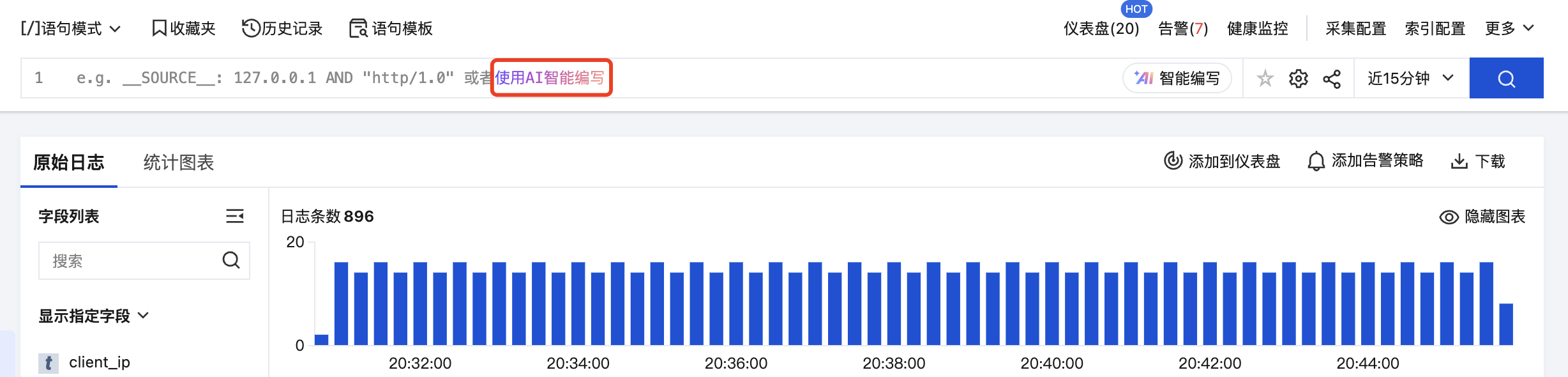 4. 在查询语句输入框中单击使用 AI 智能编写。