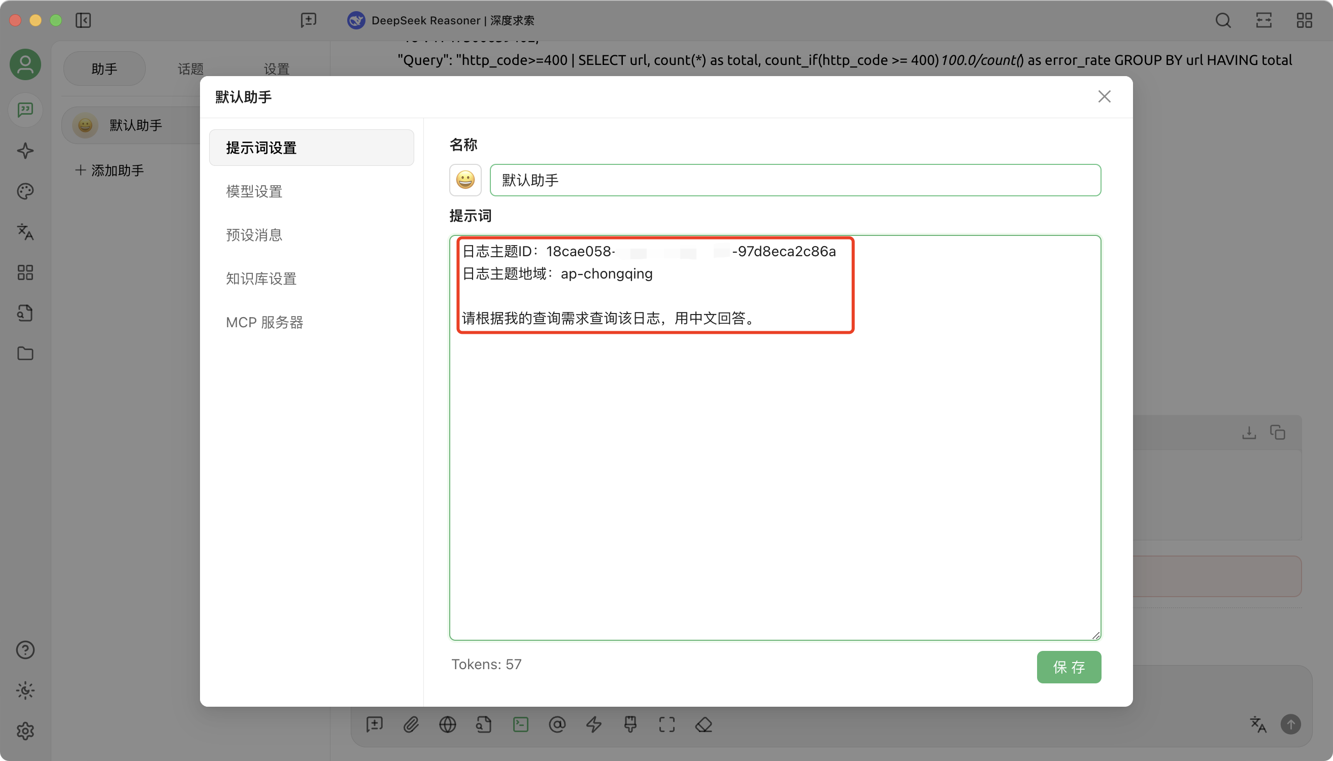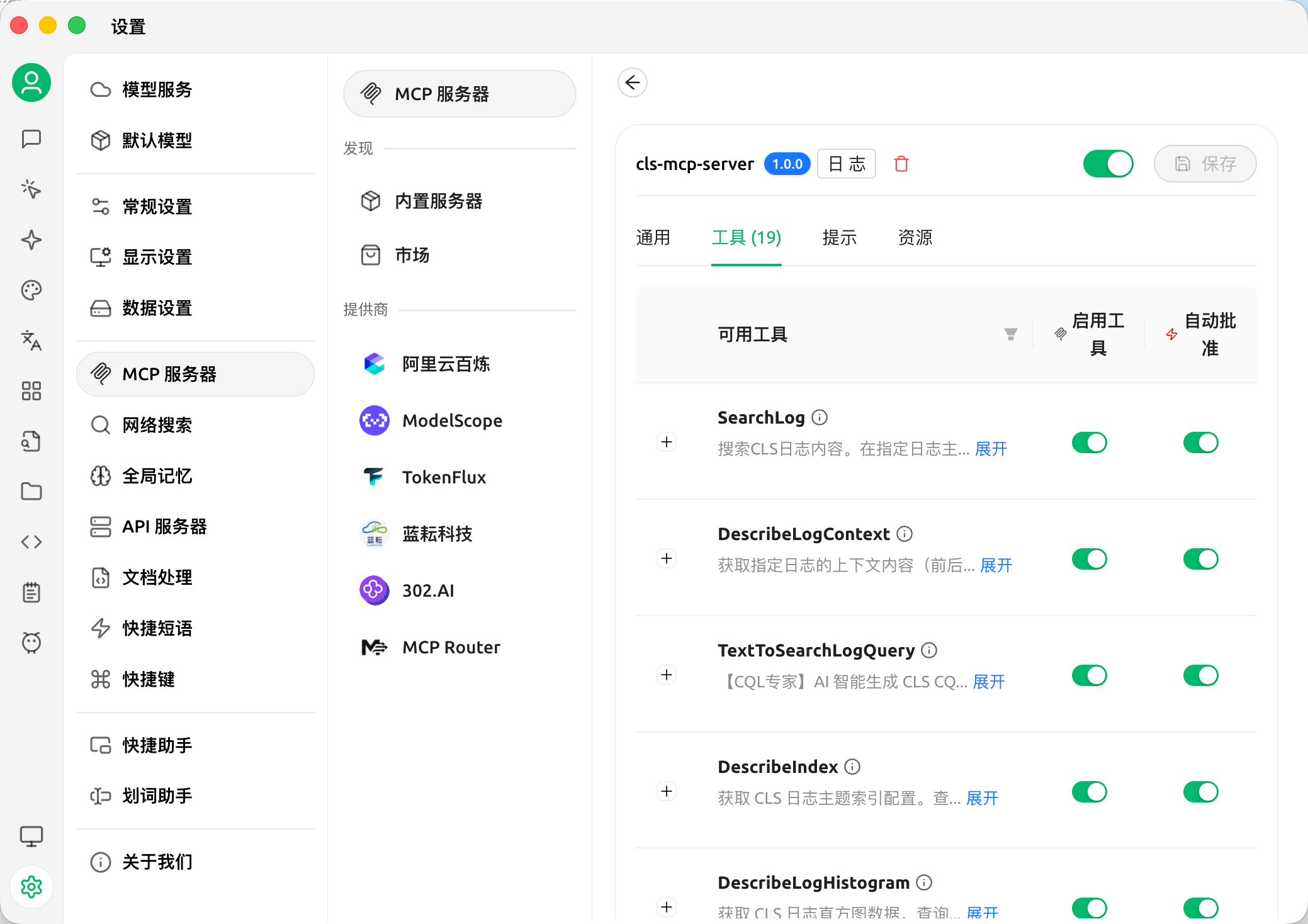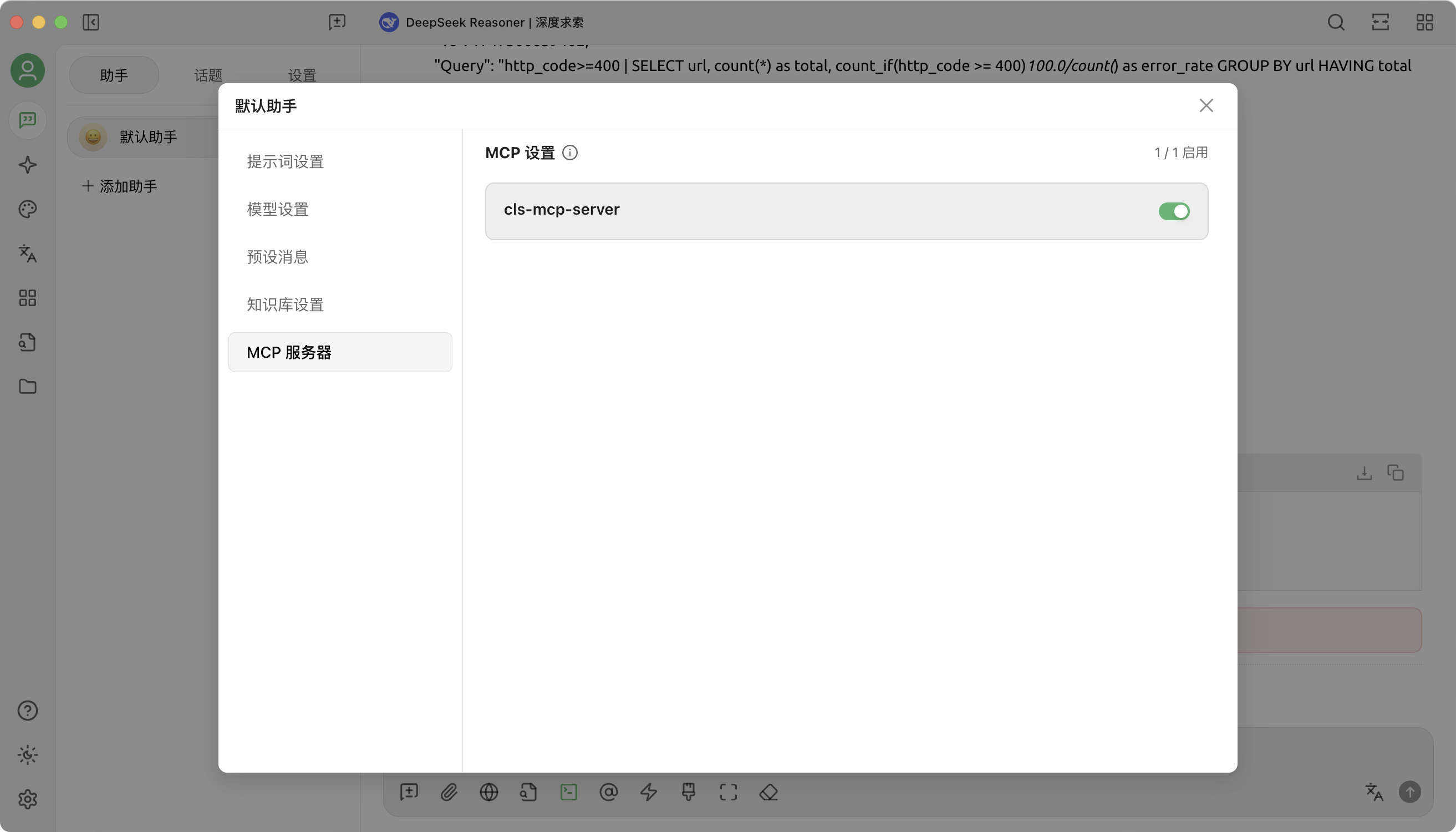 以 Cherry Studio 为例,演示 CLS MCP Server 配置方式: