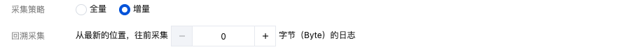 当采集策略选择为增量采集时,您可以进一步在此设置回溯采集的起始点,指定 LogListener 启动时是否从最新位置往前偏移您指定字节数开始采集。