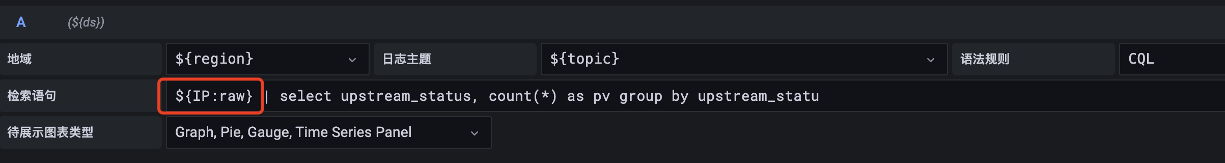 在 Grafana 配置地域变量与日志主题变量,并在图表中引用。可以对仪表盘图表的地域和日志主题进行替换。其配置过程如下: