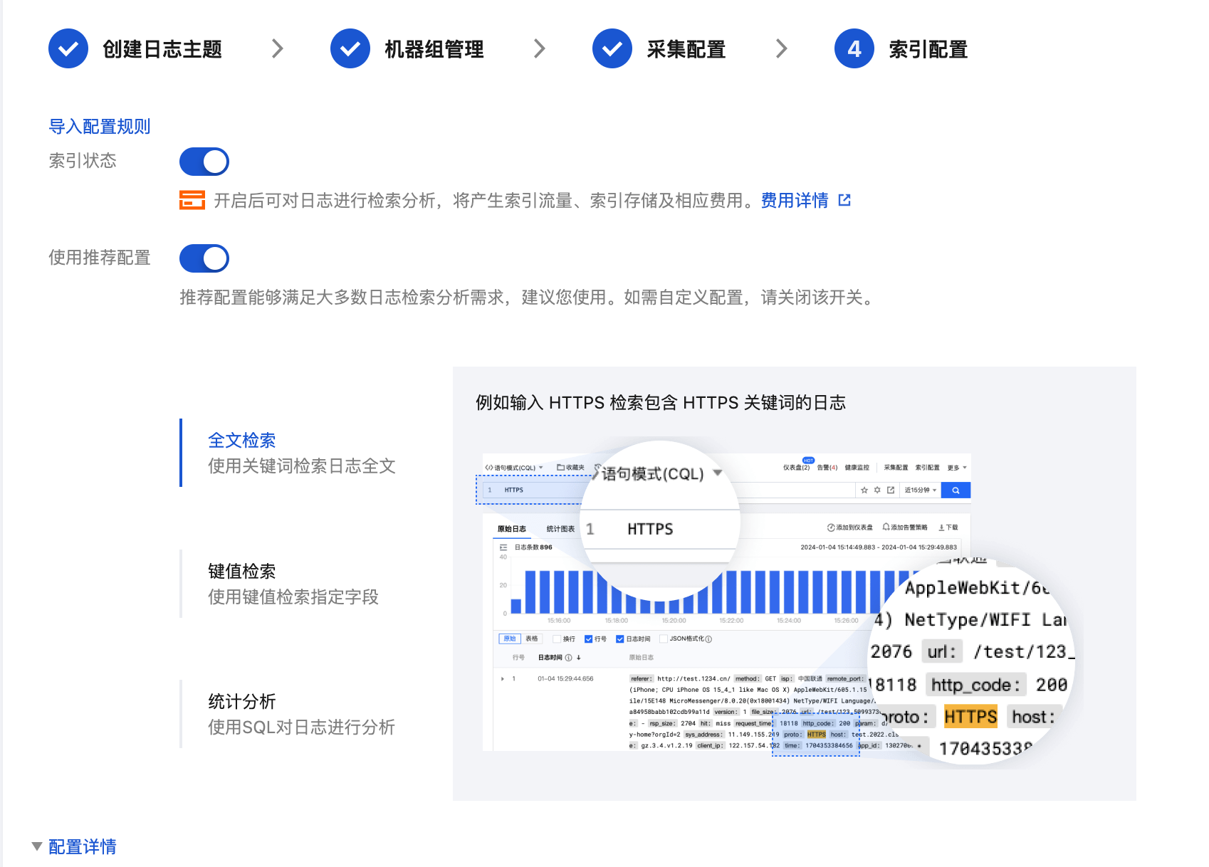 2. 在“索引配置”页面,设置如下信息。配置详情请参见 索引配置。