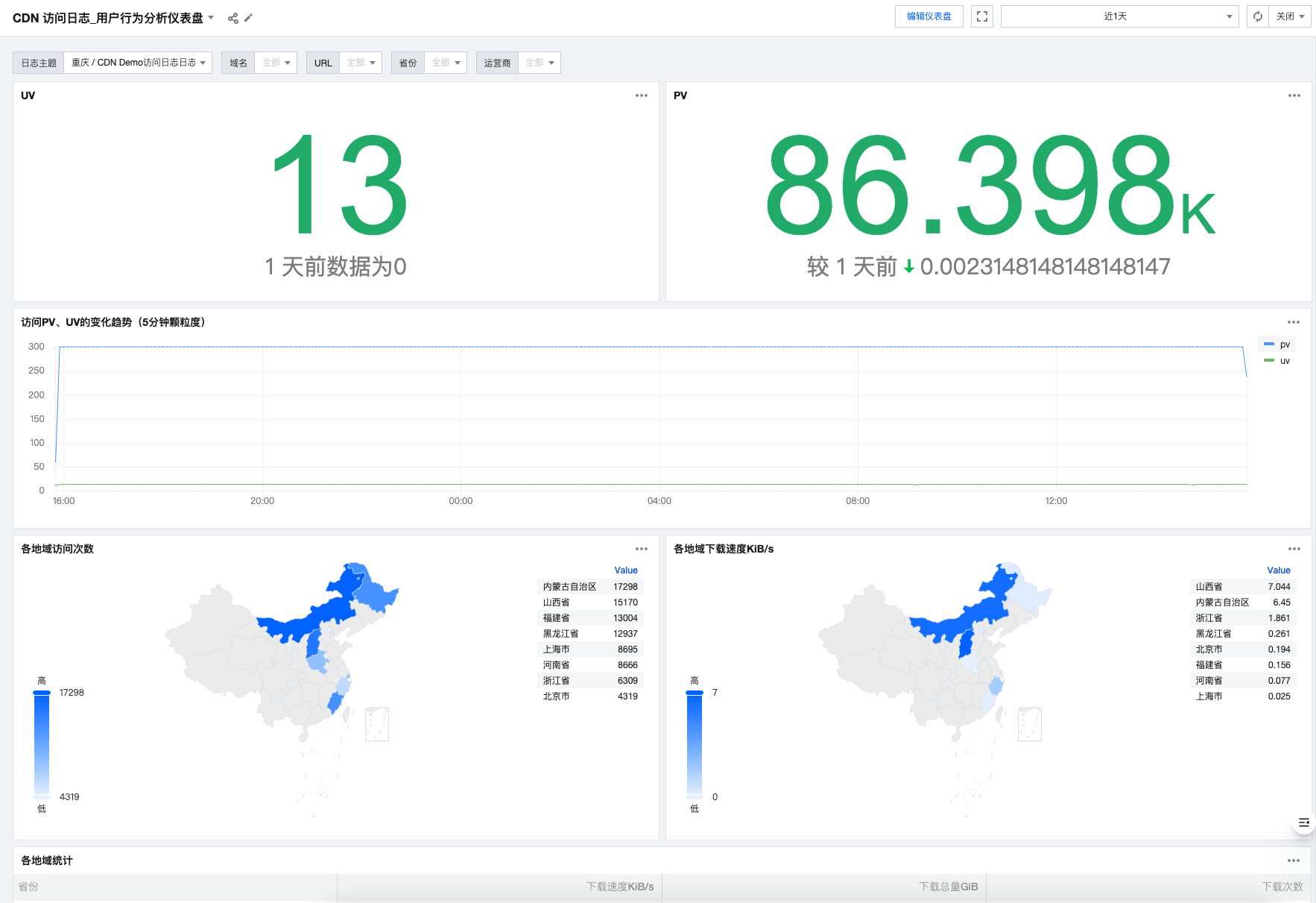 您可通过以下操作操作查看以上 CDN 预置仪表盘: