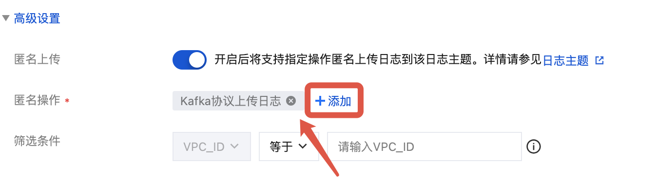 output {kafka {topic_id => "${ClstopicID}"bootstrap_servers => "${region}-producer.cls.tencentyun.com:${port}"sasl_mechanism => "PLAIN"security_protocol => "SASL_PLAINTEXT"compression_type => "${compress}"# 若要匿名上传,password='topic_id#${日志主题 ID}'sasl_jaas_config => "org.apache.kafka.common.security.plain.PlainLoginModule required username='${ClslogsetID}' password='${secret_id}#${secret_key}';"codec => json}}