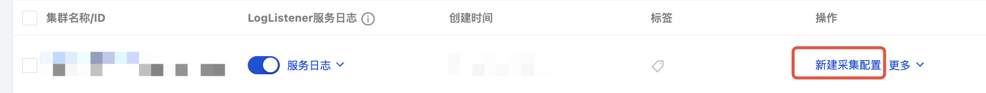 5. 单击右侧新建采集配置, 进入集群日志采集配置流程。