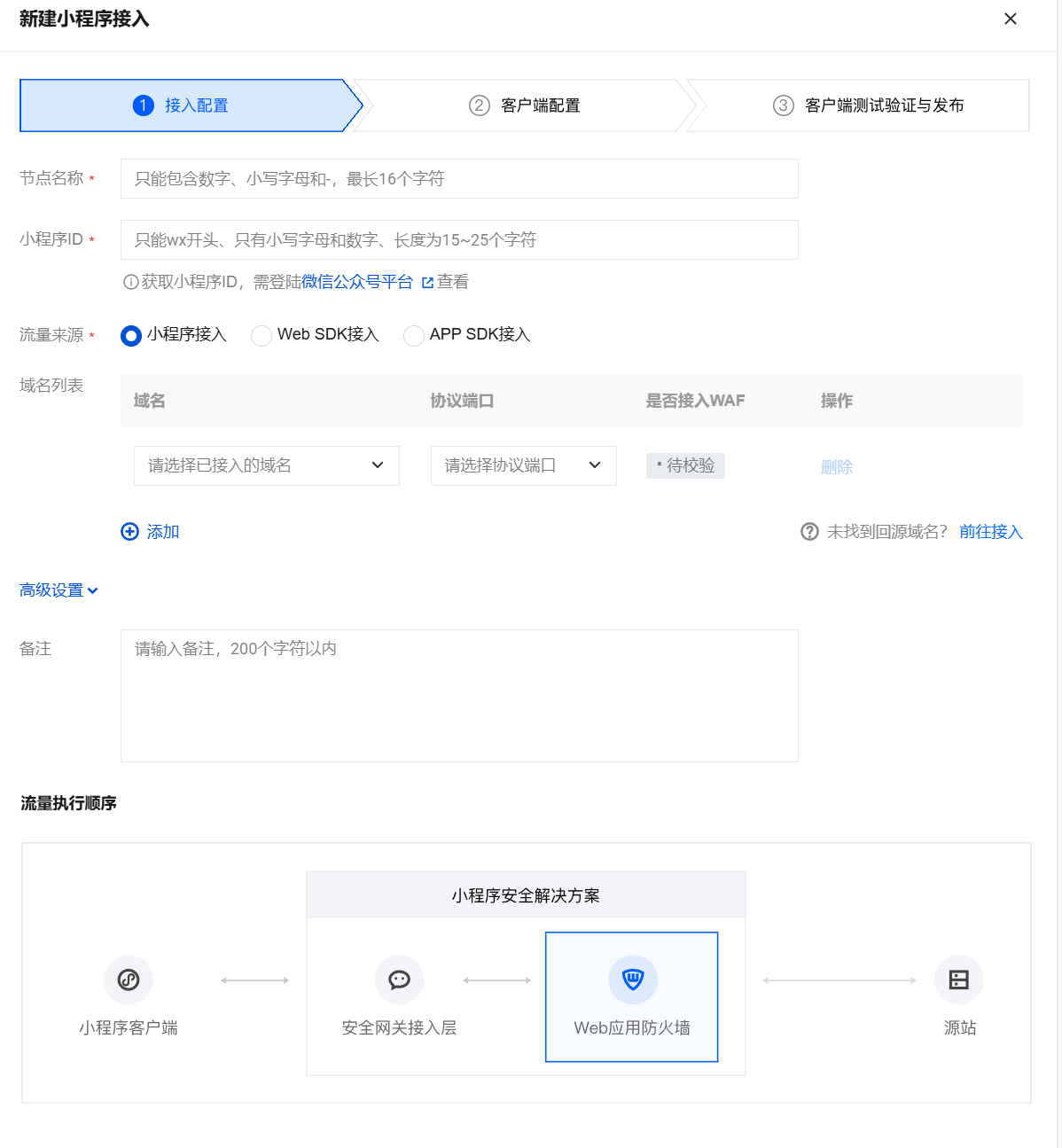 步骤2:完善小程序源站接入 WAF 后,扫码测试验证