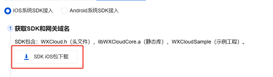 SDK:前往客户端配置页面,下载 SDK iOS 资源包。SDK包含: