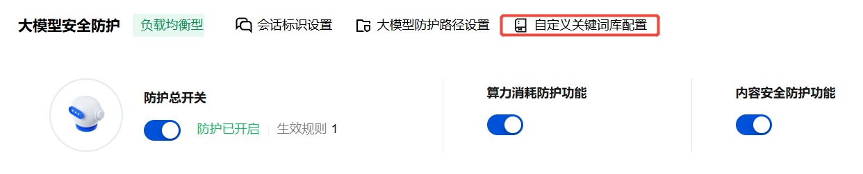大模型防护系统提供预置关键词库,可辅助内容安全引擎完成基础语义检查;若您的业务有特殊词汇需求(如垂直领域术语、动态风险词),可通过上传自定义内容,灵活构建专属关键词库,进一步提升拦截精准度。可以前往 大模型安全页面,单击自定义关键词库配置进行配置。