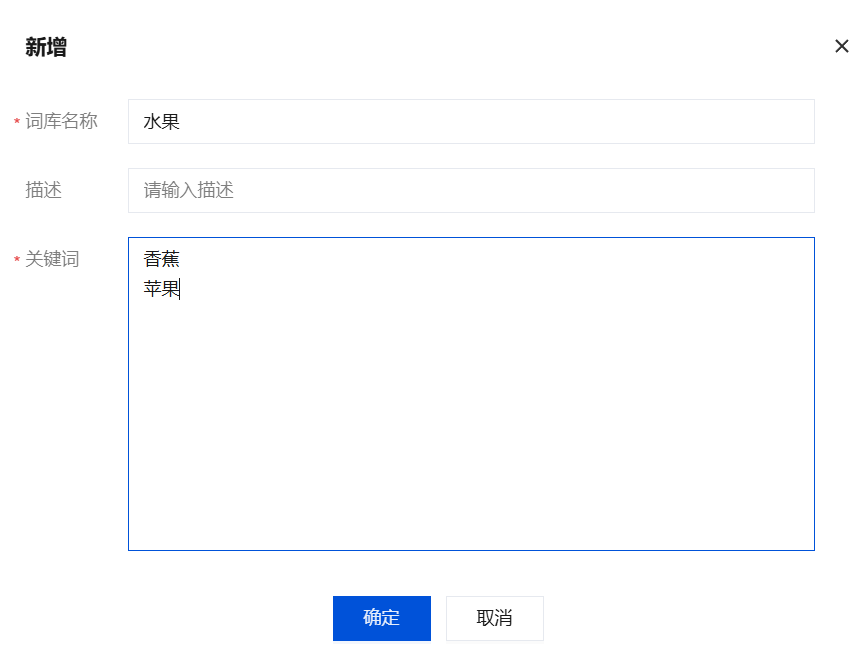描述 | 自定义关键词库的描述。 |
