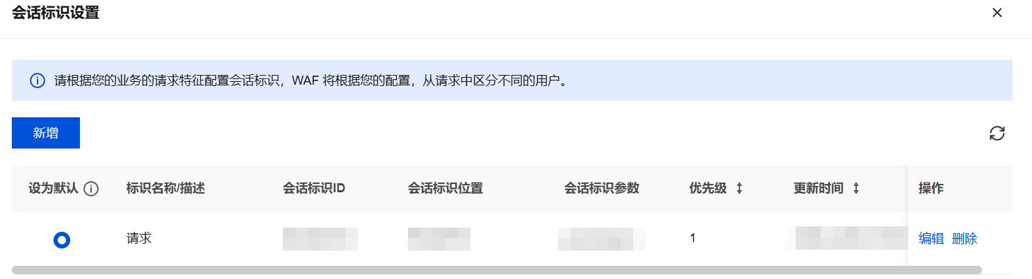 设置默认 | 支持设置默认会话标识,设置默认后,则在创建安全策略时默认使用该会话标识配置进行提取。 |