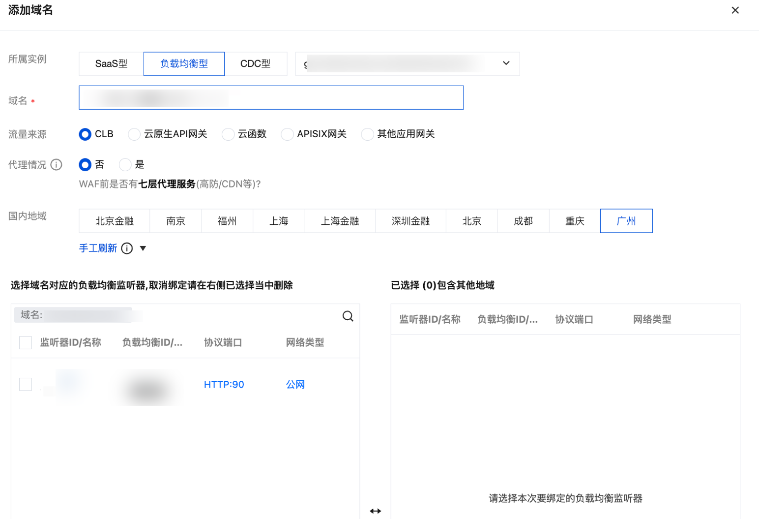 所属实例:选择负载均衡型和对应负载均衡型 WAF 实例名称。