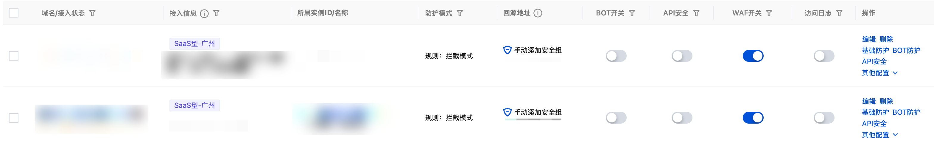 3. 单击确定,即可返回域名接入。在域名接入可以查看到防护域名