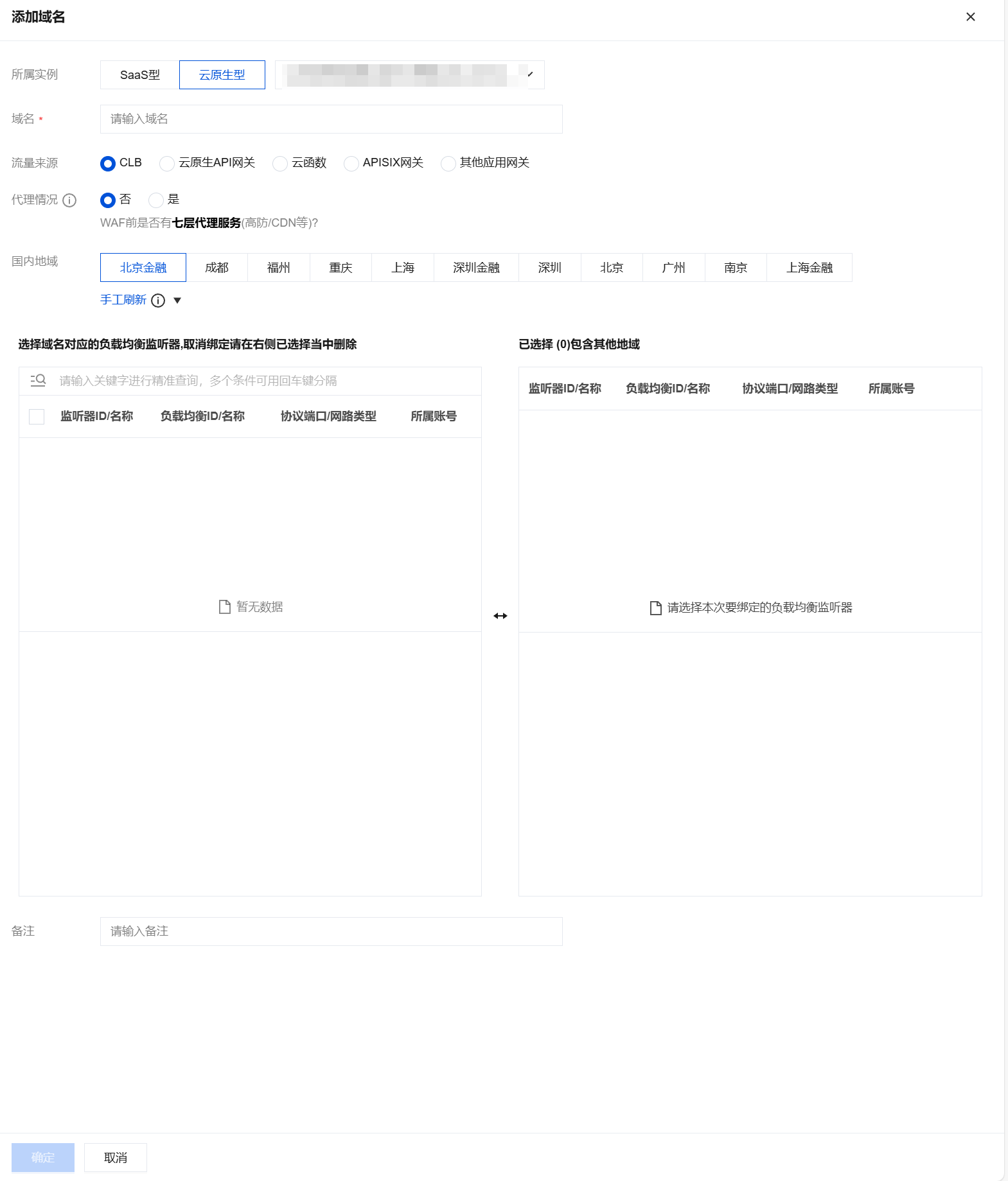 3. 支持为空监听器(无绑定后端服务的监听器) 的域名进行接入,用来覆盖 CLB 实例监听器的默认域名和 CLB 实例的对象接入带来的 Web 流量(如自定义域名 api.example.com 或直接通过 CLB 的 VIP 访问)防护。