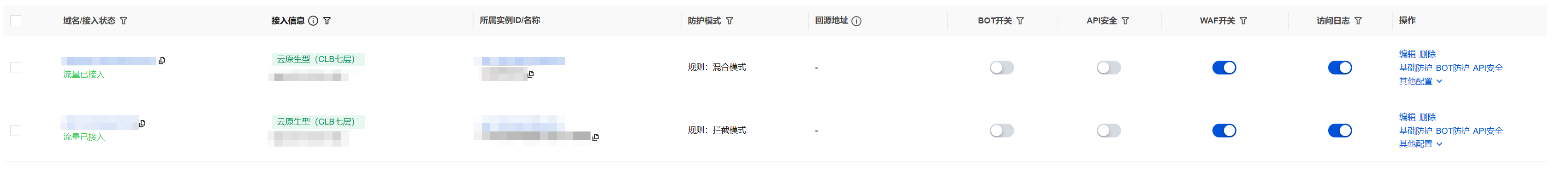 clb.technicalsupport.cn 和负载均衡实例的 ID、名称、防护模式和回源地址信息等。