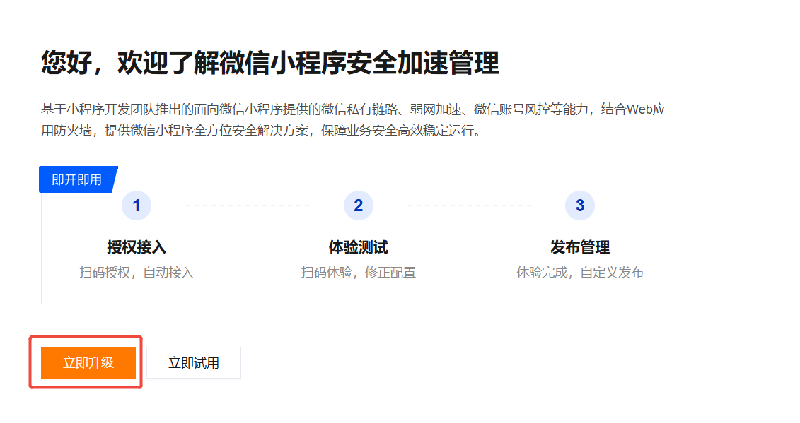 小程序安全防护 | 组合微信安全网关接入产品,支持微信小程序就近安全防护和动态加速能力,提供统一的小程序安全防护方案。 |