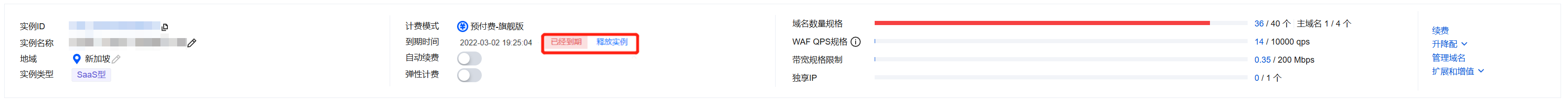 Web 应用防火墙资源到期后7天内,用户可以自行在控制台释放 WAF 实例。