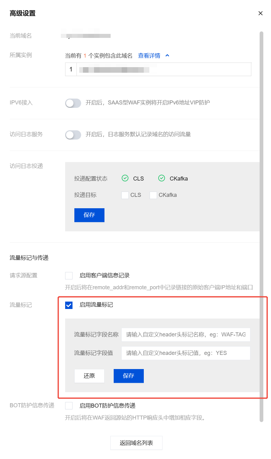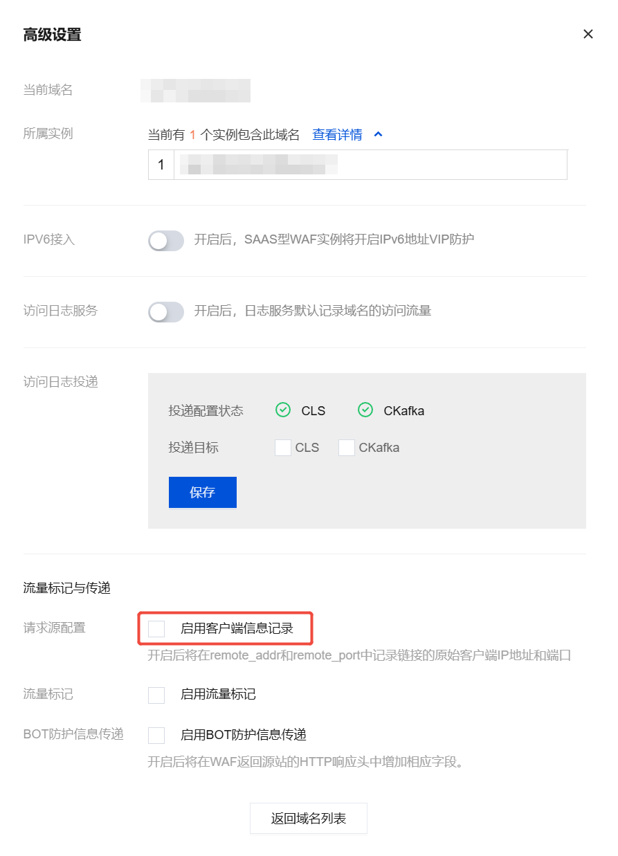 本文档主要介绍在接入域名后,如何启用访问日志投递、请求源配置、流量标记、BOT 防护信息传递功能,以及访问日志记录等基于域名级的配置能力,助力客户满足等保合规合法诉求。