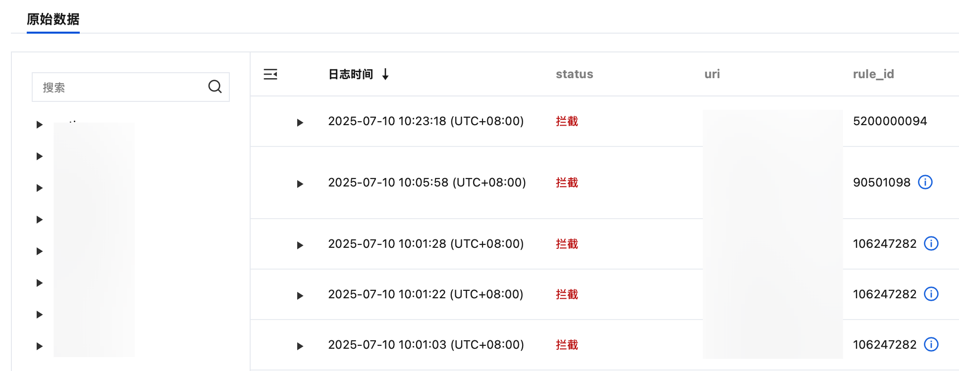 在 攻击日志页面,选择所需数据,复制该数据的 rule_id。