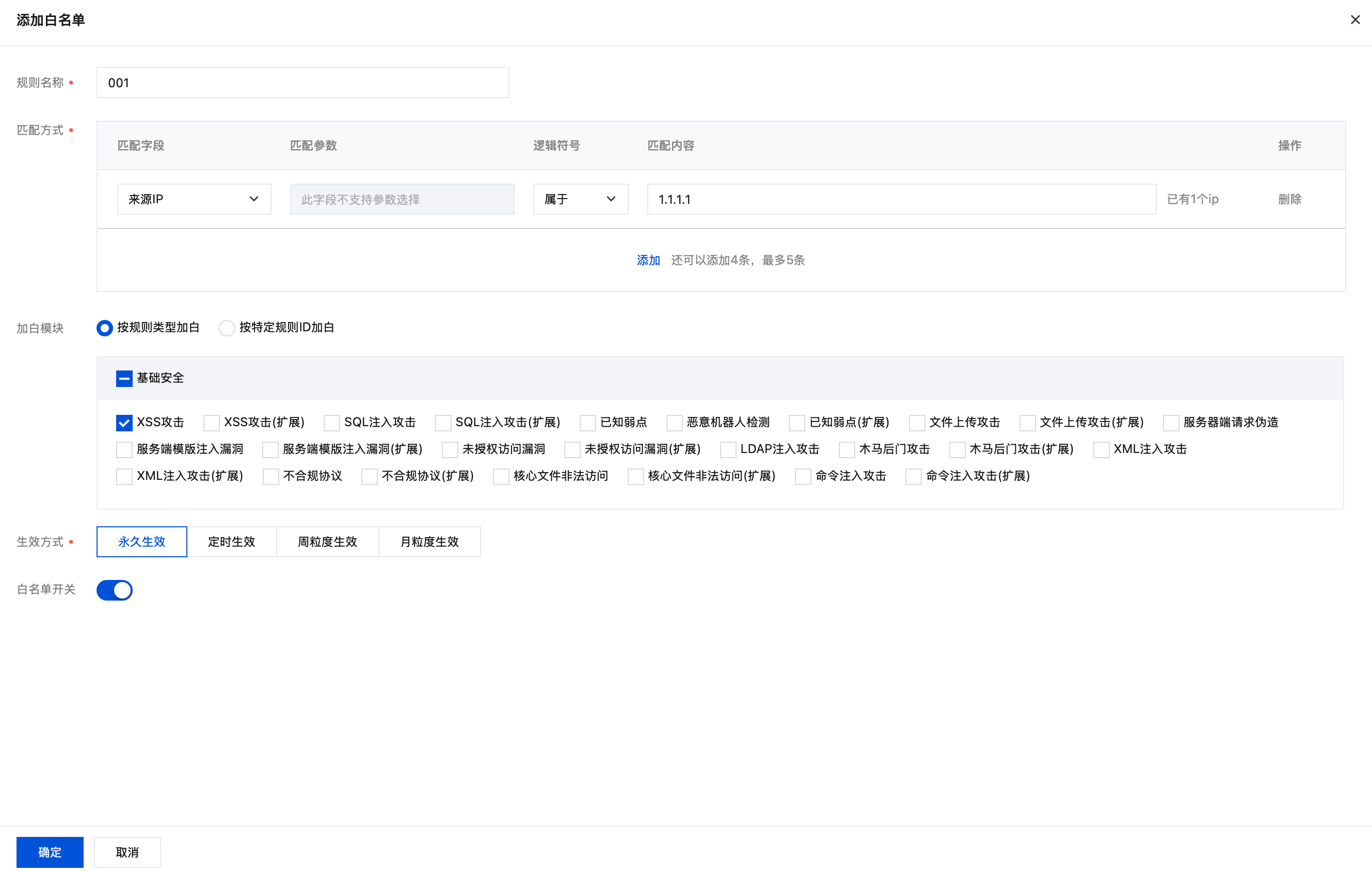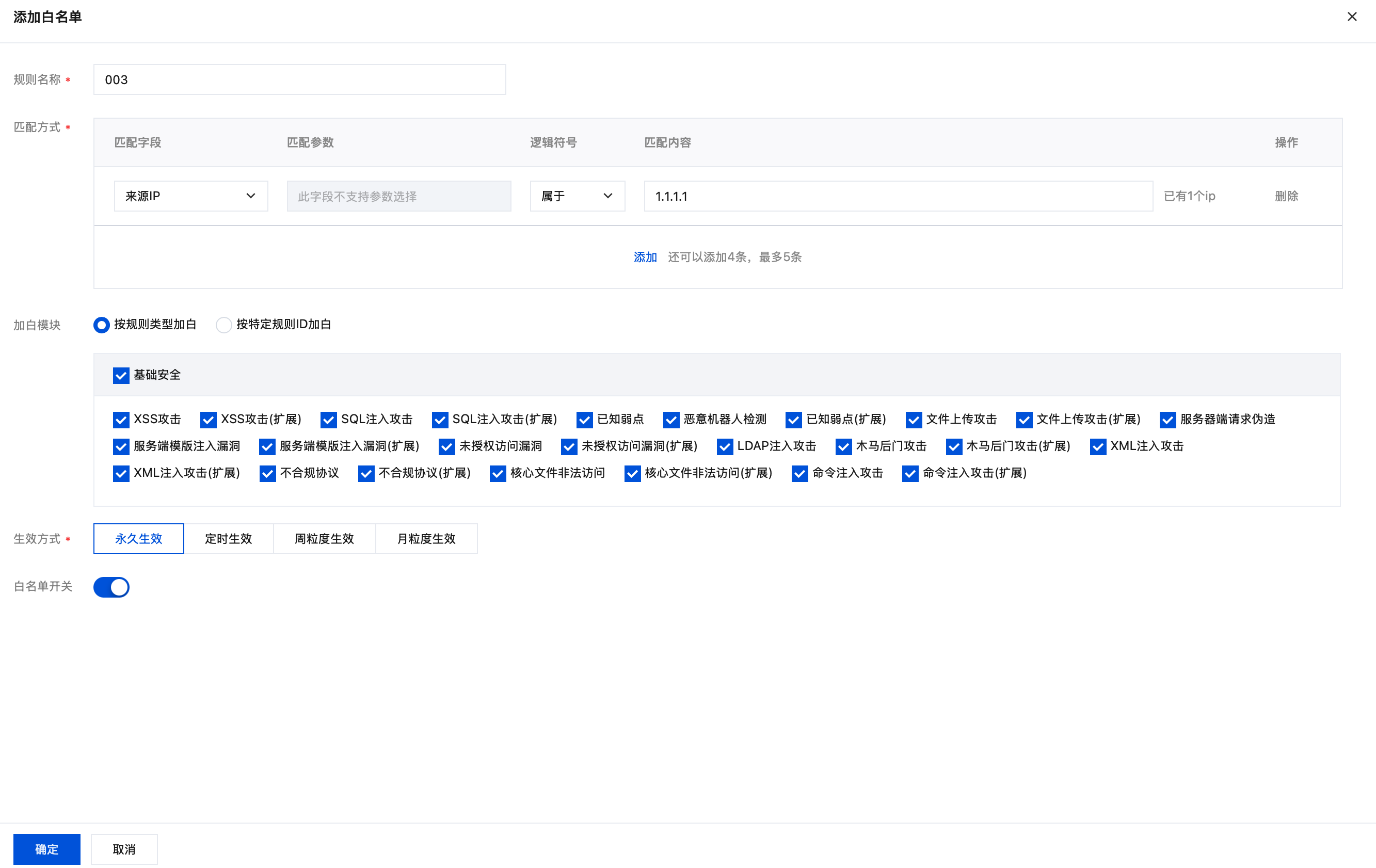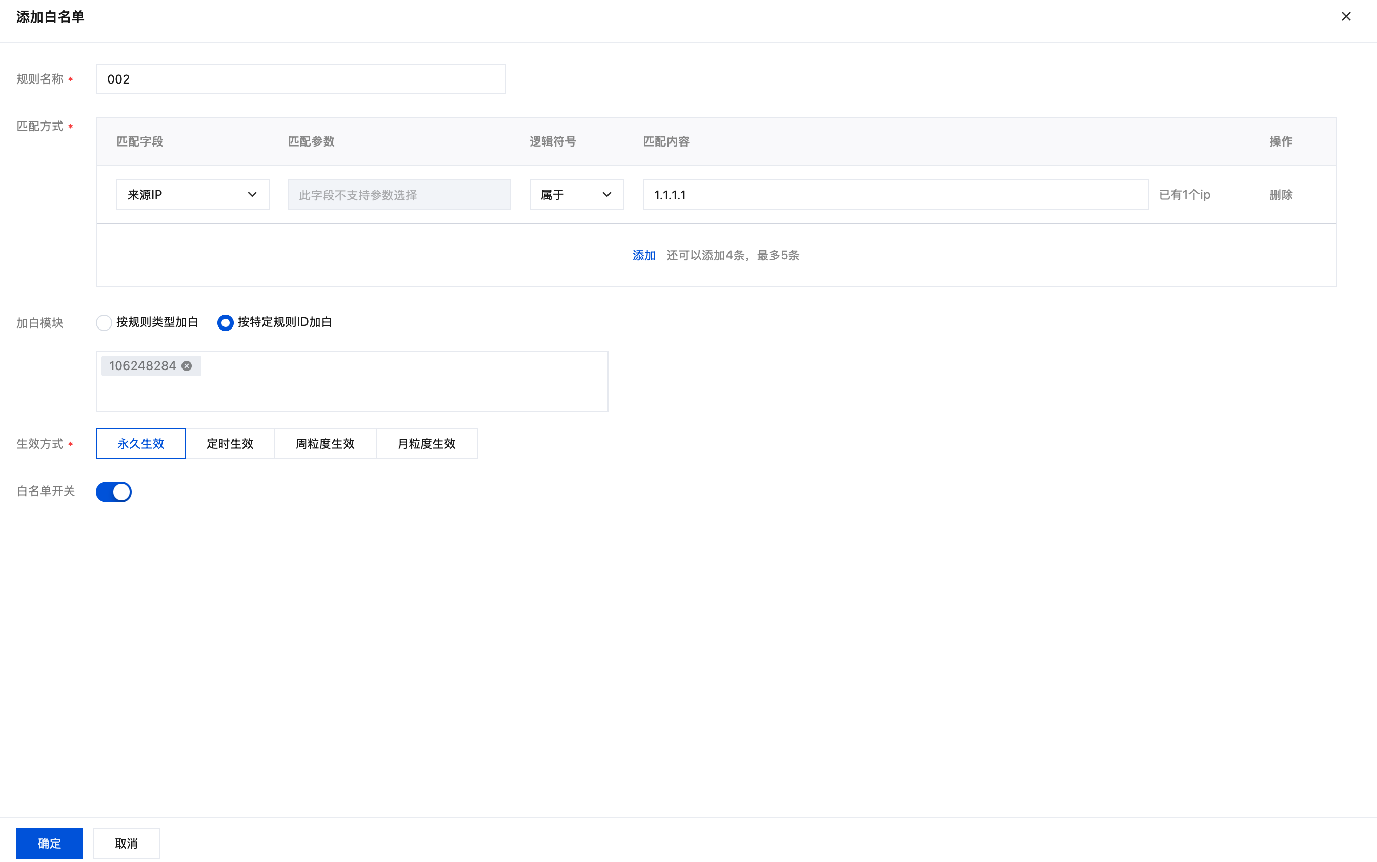 白名单开关:支持一键启用/停用此白名单规则。