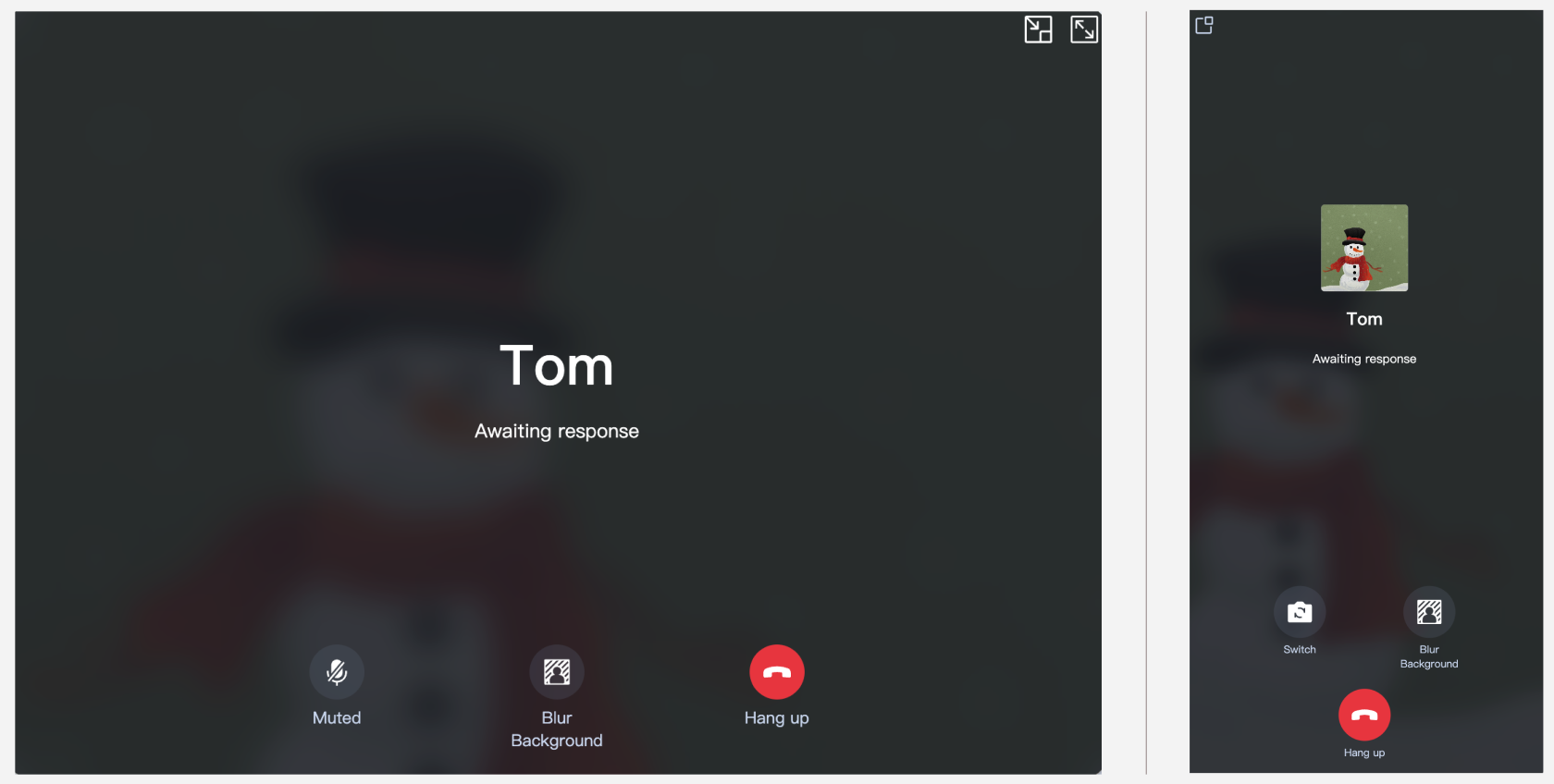您可以通过调用 enableFloatWindow 开启/关闭悬浮窗功能,在初始化 TUICallKit 组件时启用该功能,默认状态为关闭(false)。可通过点击通话界面左上角的悬浮窗按钮,将通话界面缩小为悬浮窗形式。