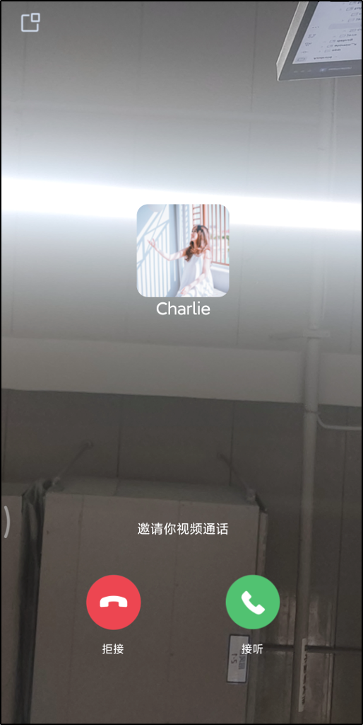 点击"通话" | Charlie 呼叫 Jane | Jane 收到来电 | Jane 点击"接听"后双方开始通话 |