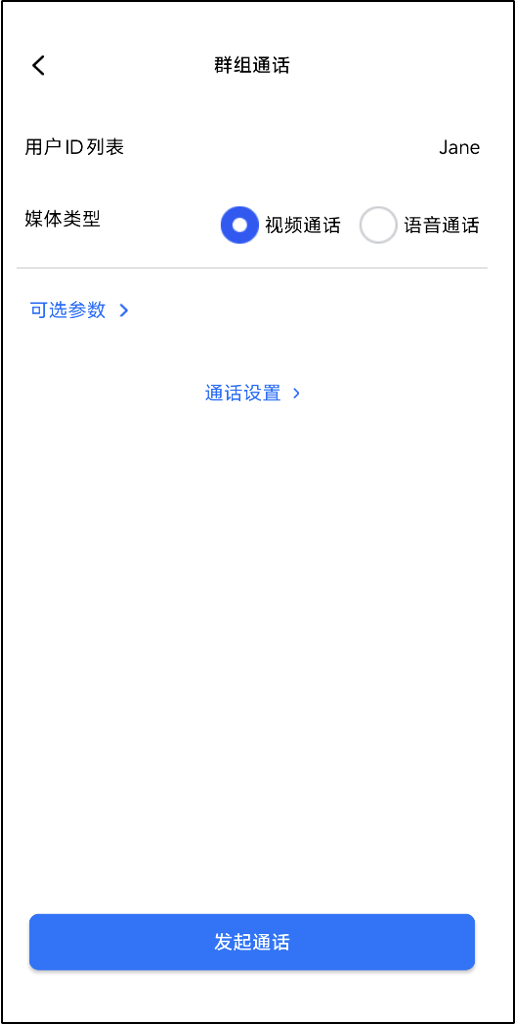 发起通话需确认:被呼叫用户 ID 是已登录的有效 ID。