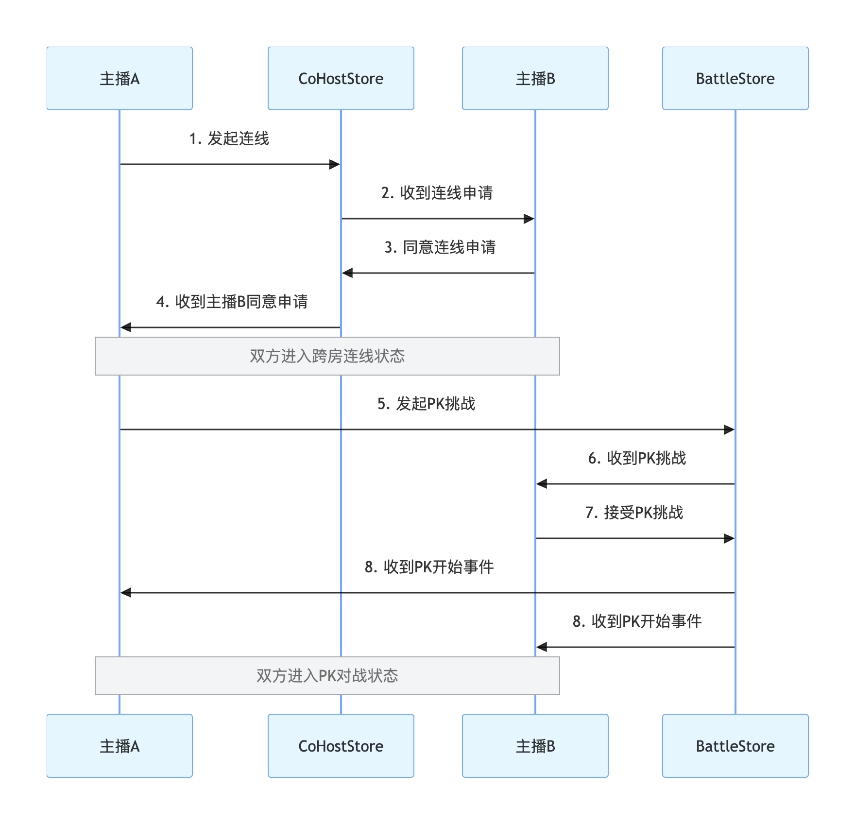 AtomicXCore 提供了 CoHostStore 和 BattleStore 两个核心模块,分别用于处理跨房连线和 PK 对战。本文档将指导您如何组合使用这两个工具,来完成直播场景下连线到 PK 的完整流程。