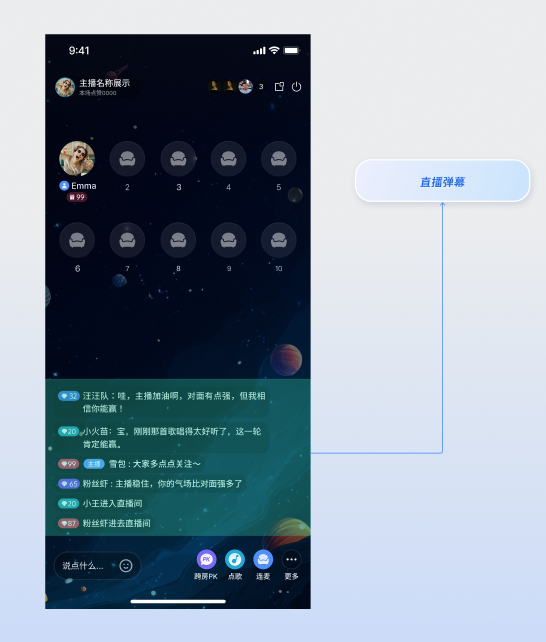 BarrageState 为您的直播应用提供了一套完整的弹幕解决方案,核心功能包括:接收并展示直播间弹幕消息。