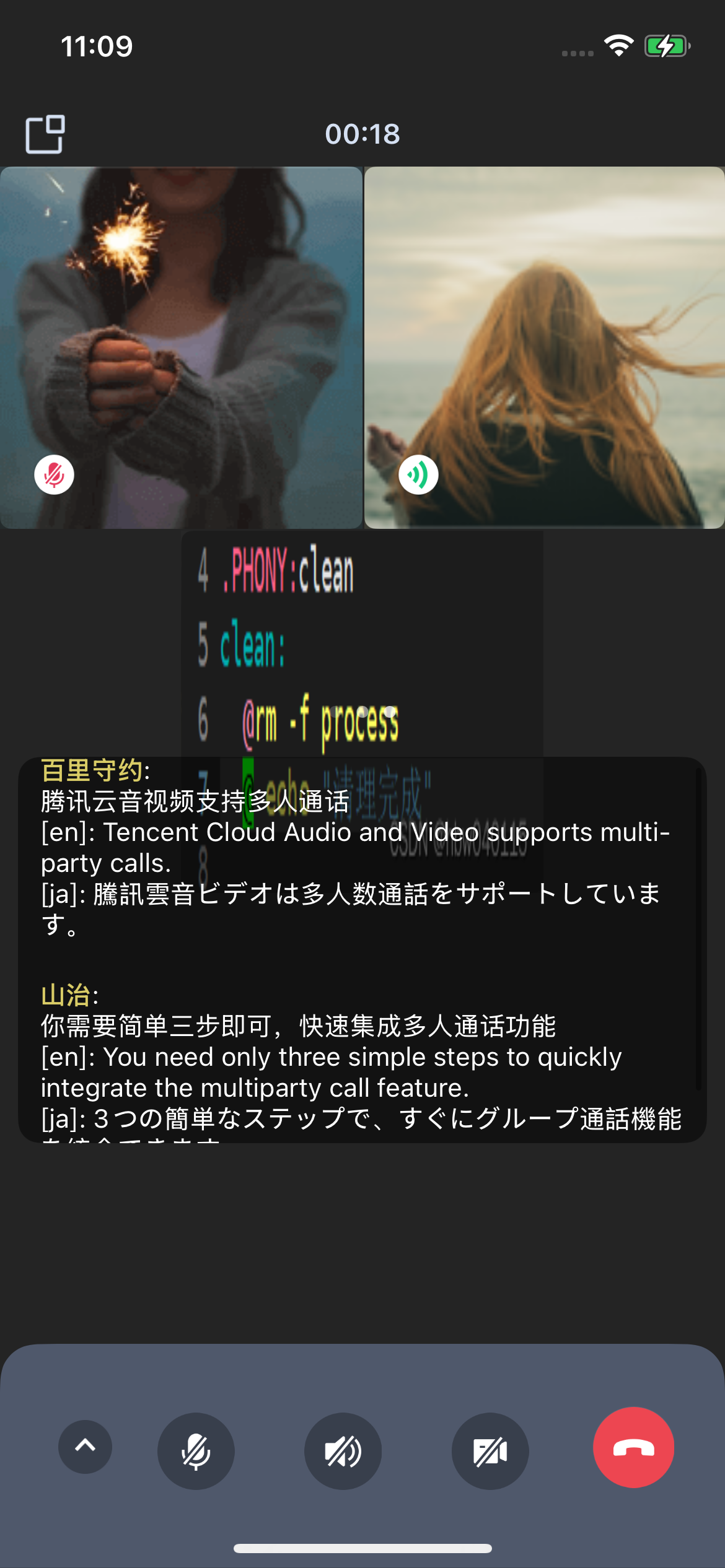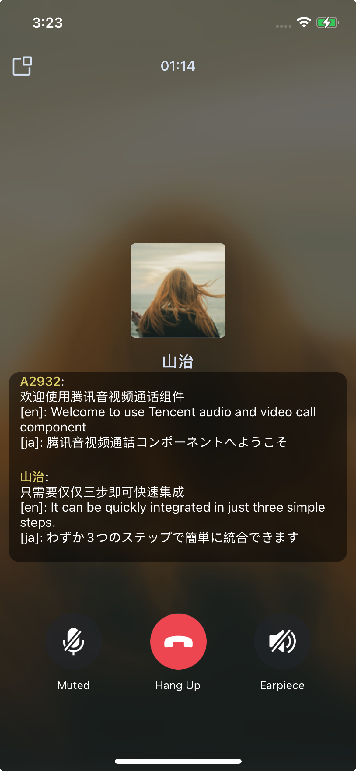 完成接入后,当您使用 TUICallKit 进行通话时实时翻译结果将展示在通话页面上,帮助用户实现高效的跨语言沟通。
