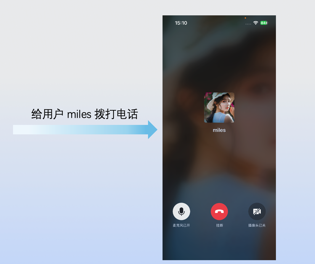2. 开启媒体设备:发起通话成功后开启麦克风,如果是视频通话同时开启摄像头。