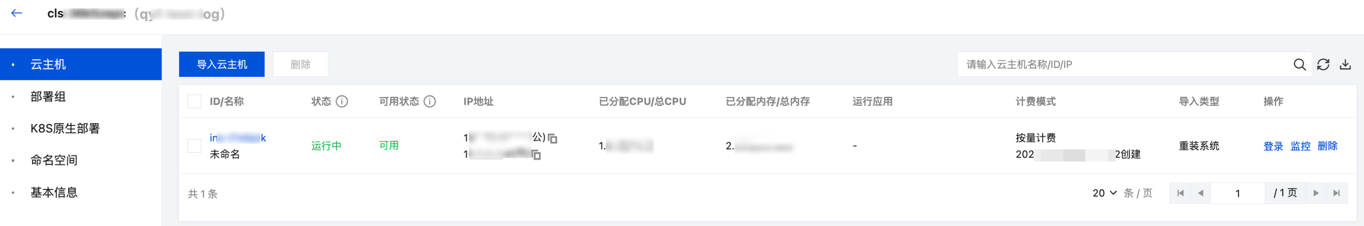 3. 前往 资源管理,确认所选地域后,点击容器集群,单击目标集群的 ID,进入云主机列表页面,在该列表可获取集群中对应云主机的 公网 IP 地址。