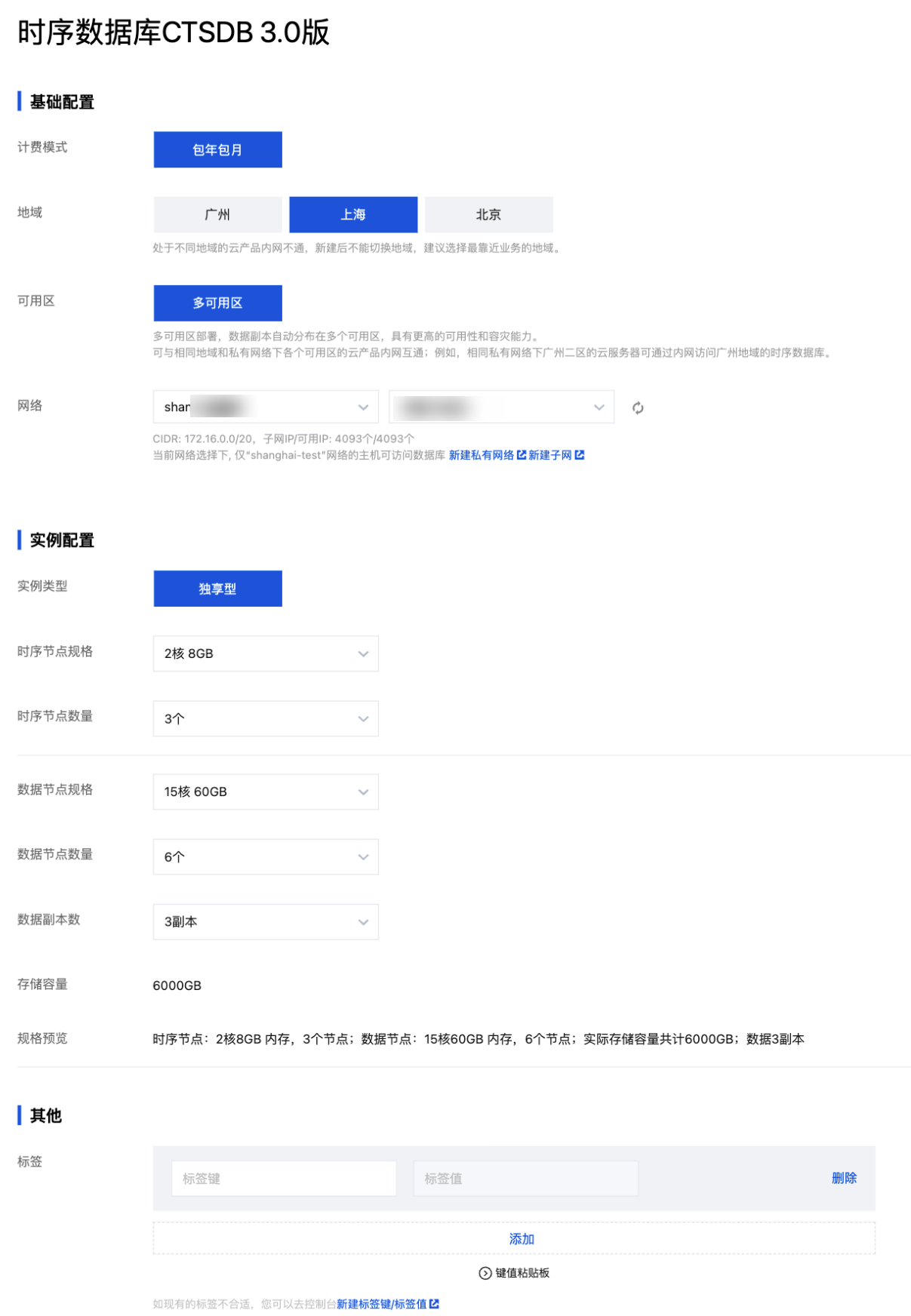 3. 单击新建实例,进入时序数据库CTSDB 3.0版购买页面。