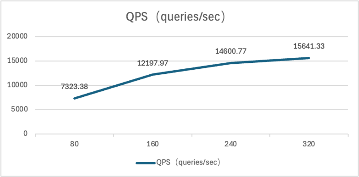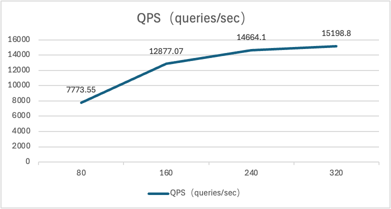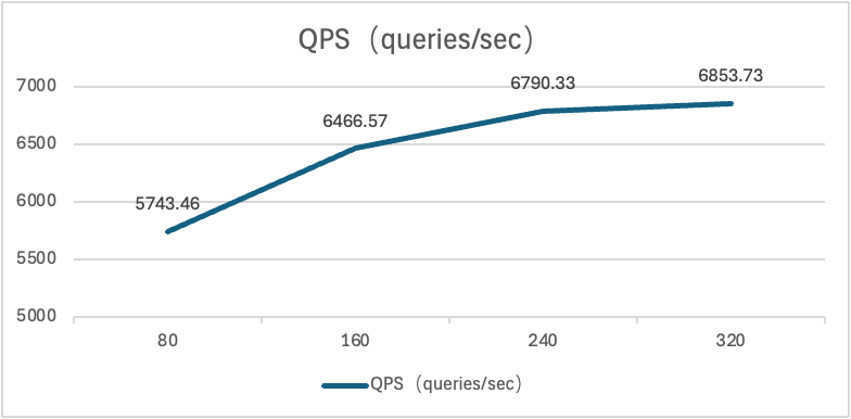 测试并发数 | QPS(queries/sec) | 最小时延(ms) | 平均时延(ms) | 最大时延(ms) |