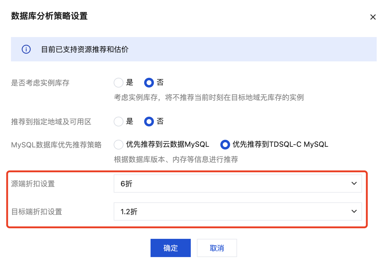 3. 设置源端和目标端折扣。平台支持对源端实例或目标端实例设置折扣,设置后将会在选型设计 > 预估费用中自动应用已设定的折扣额。