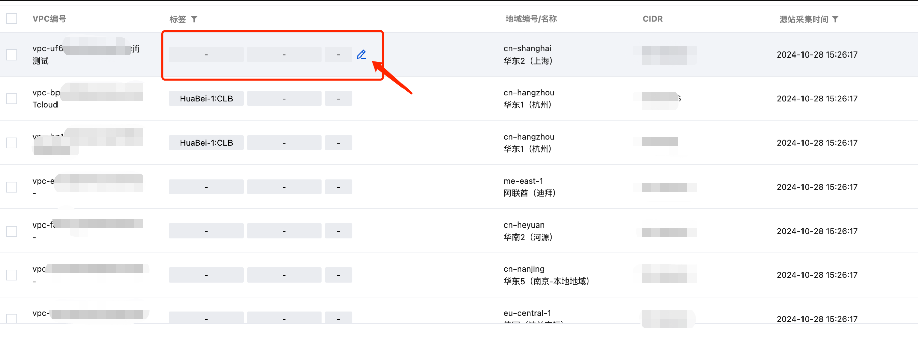 在表格中勾选需要批量编辑标签的实例,单击批量编辑标签,此时各实例会批量新增设定的标签项。
