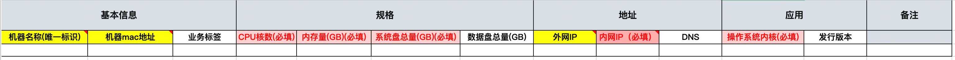 2. 根据实际情况填写文件模版,注意列名标红为必填项。