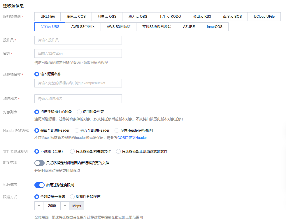 服务提供商:此处迁移源服务提供商应选择又拍云 USS。