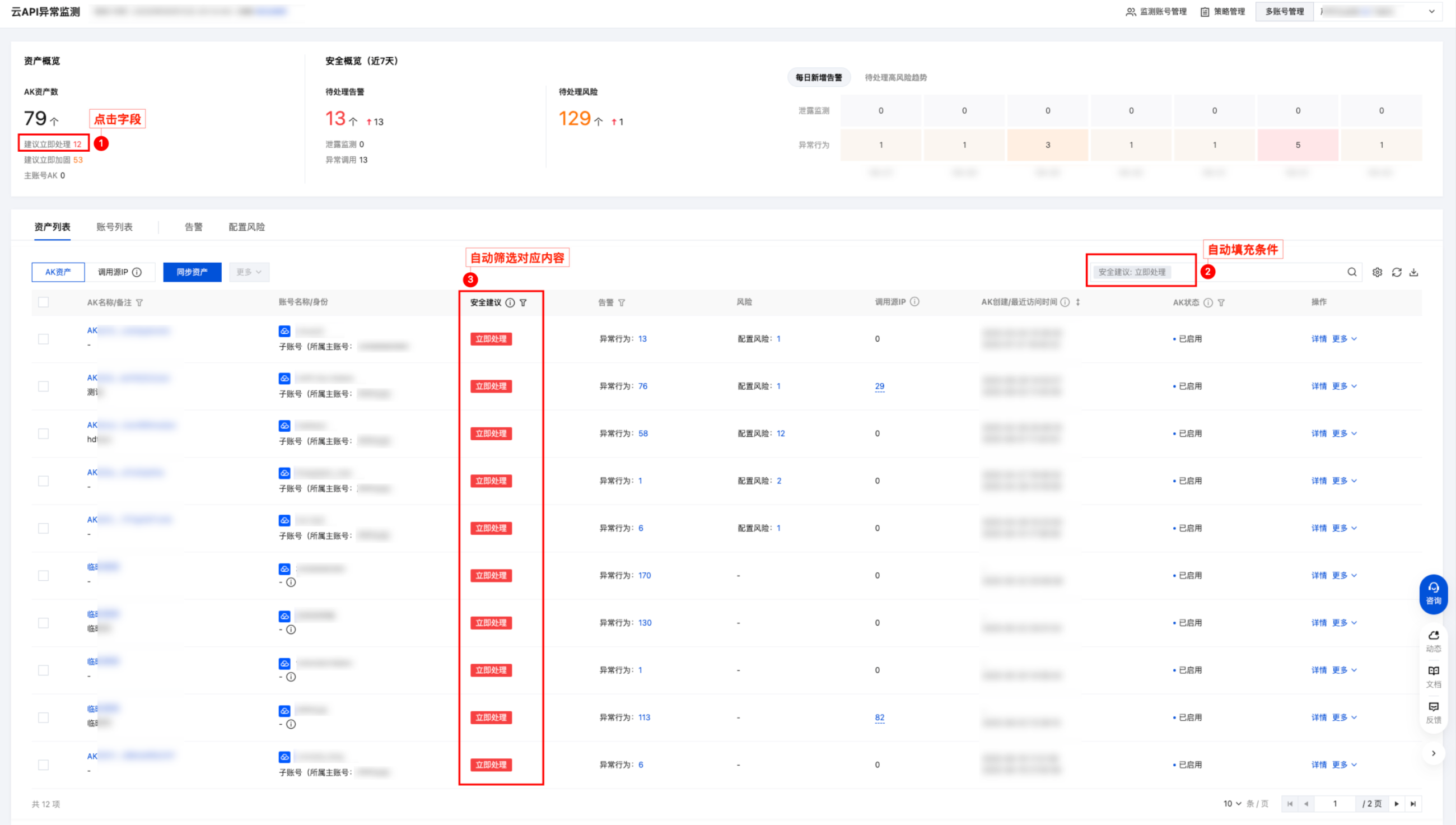 立即处理 | 该 AK 有异常调用告警/泄露事件,请立即关注并处理。 |