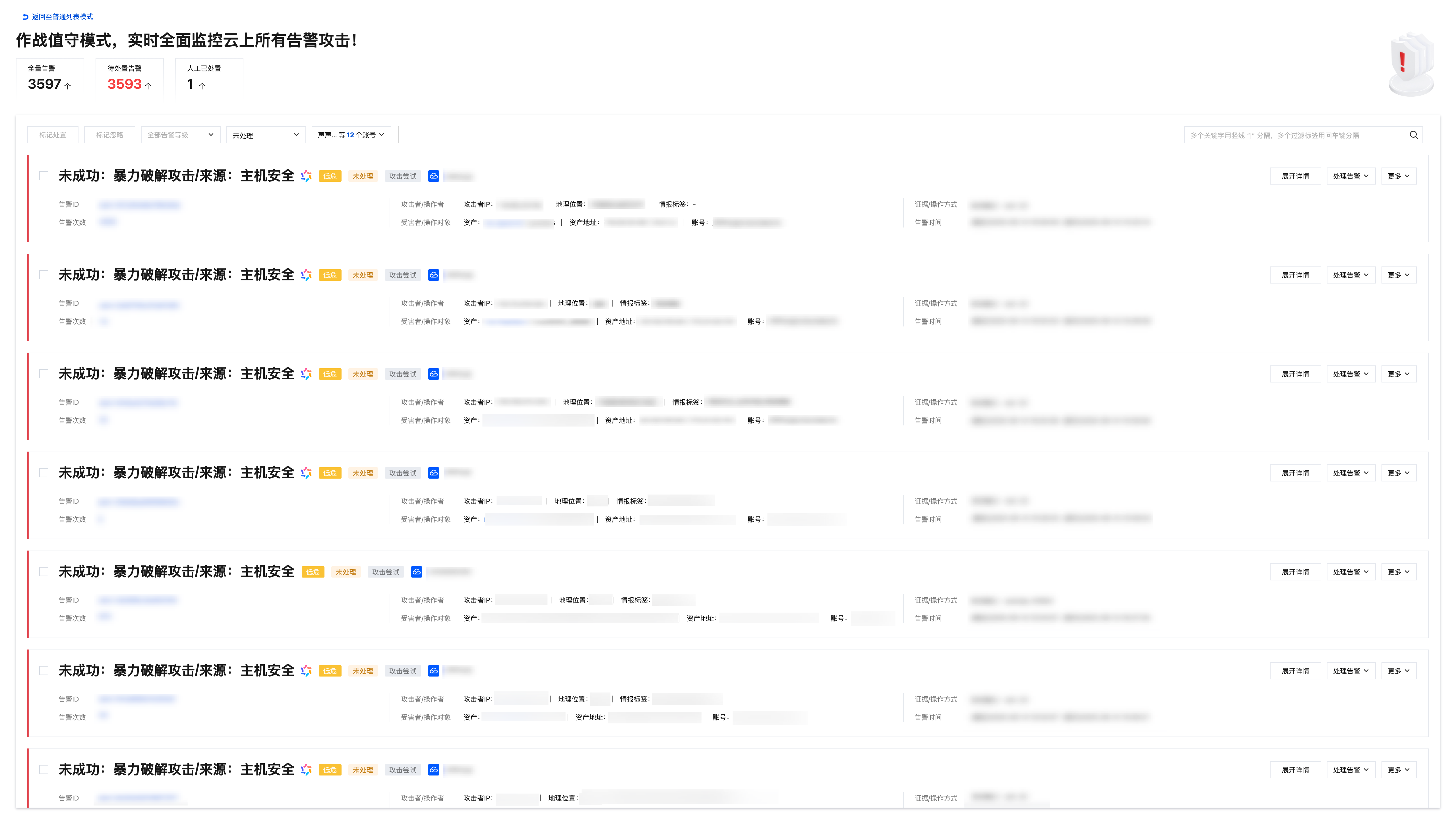 3. 此时安全大屏将实时滚动更新增量告警信息,帮助您快速获取新增待处置威胁。