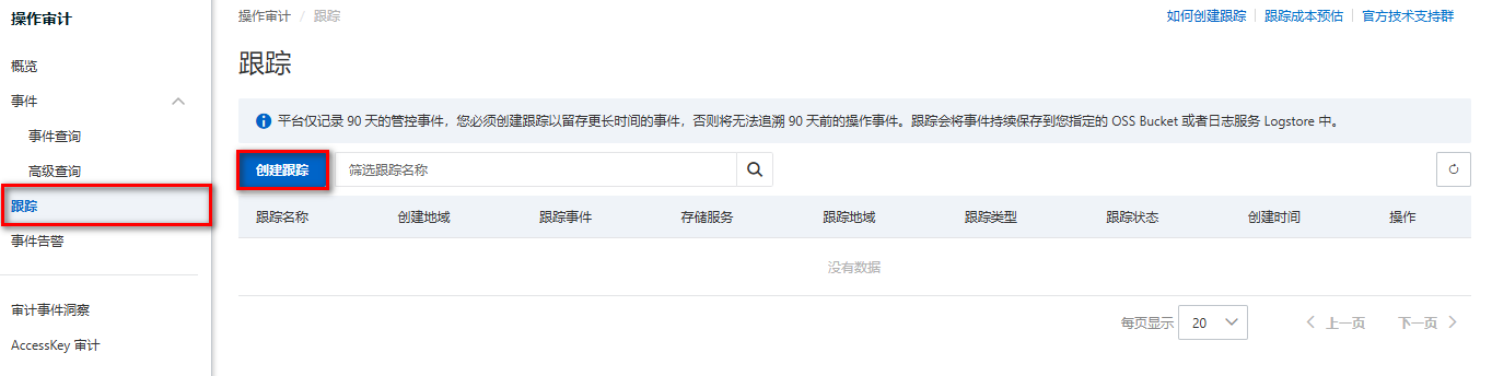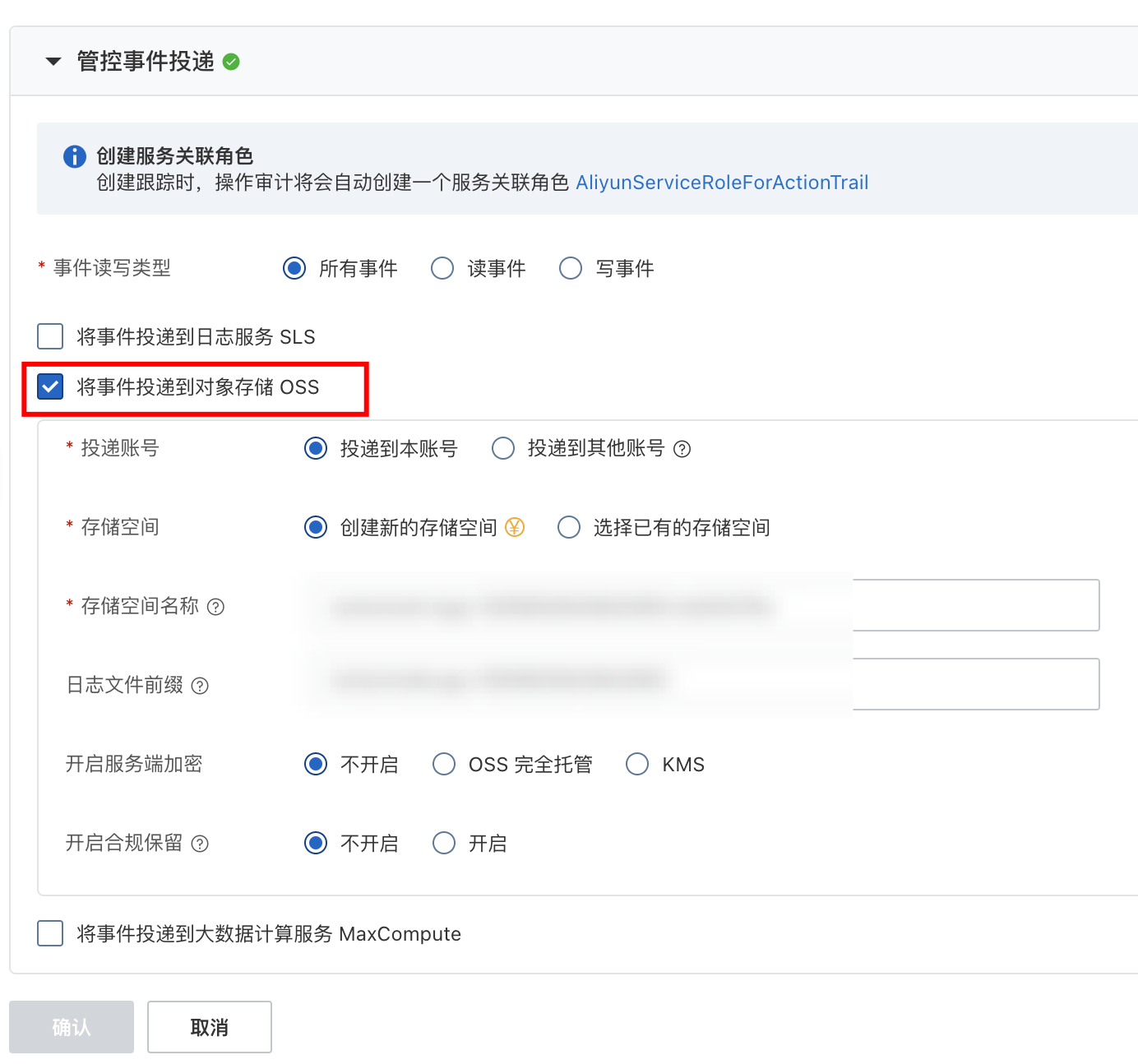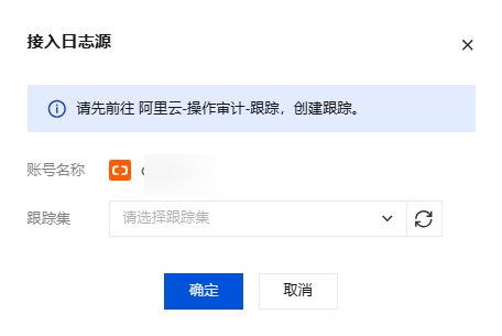 3. 在日志源接入窗口中,选择阿里云对象存储 OSS 的跟踪集,单击确定完成接入。接入完成后,您可以在 云 API 异常监测页面 进行阿里云调用源 IP 梳理、异常行为监测和策略管理。