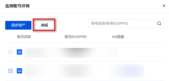 3. 在已接入的多云多账号中,单击编辑,修改检测账号范围。