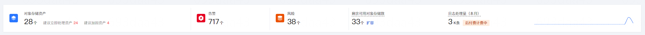建议立即加固 | 基于当前存储桶的全部待处理告警、风险,为您提供综合的安全等级,建议进行关注并收敛权限,完成加固。 |