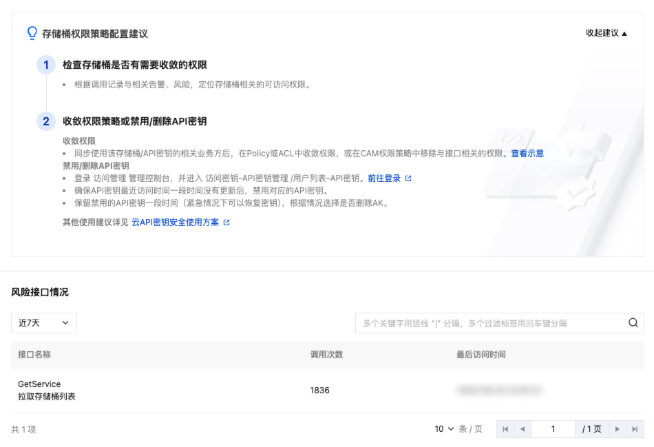 查看风险相关接口调用情况以及配置建议。