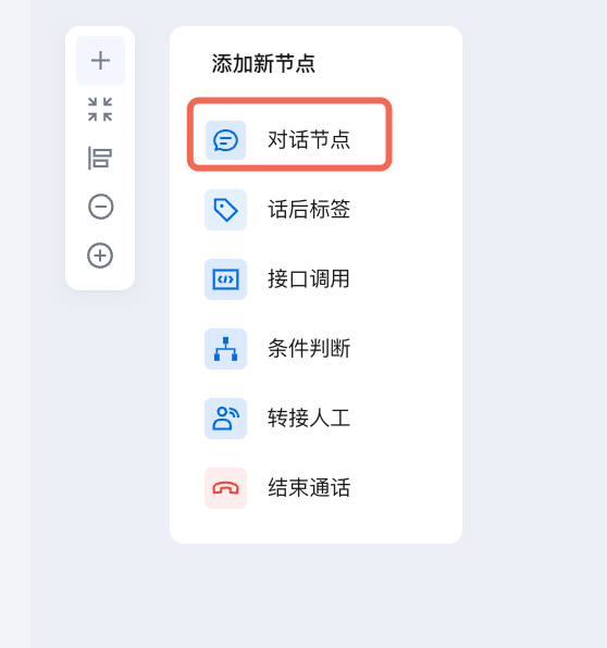 3. 点击左上角加号新增对话节点。