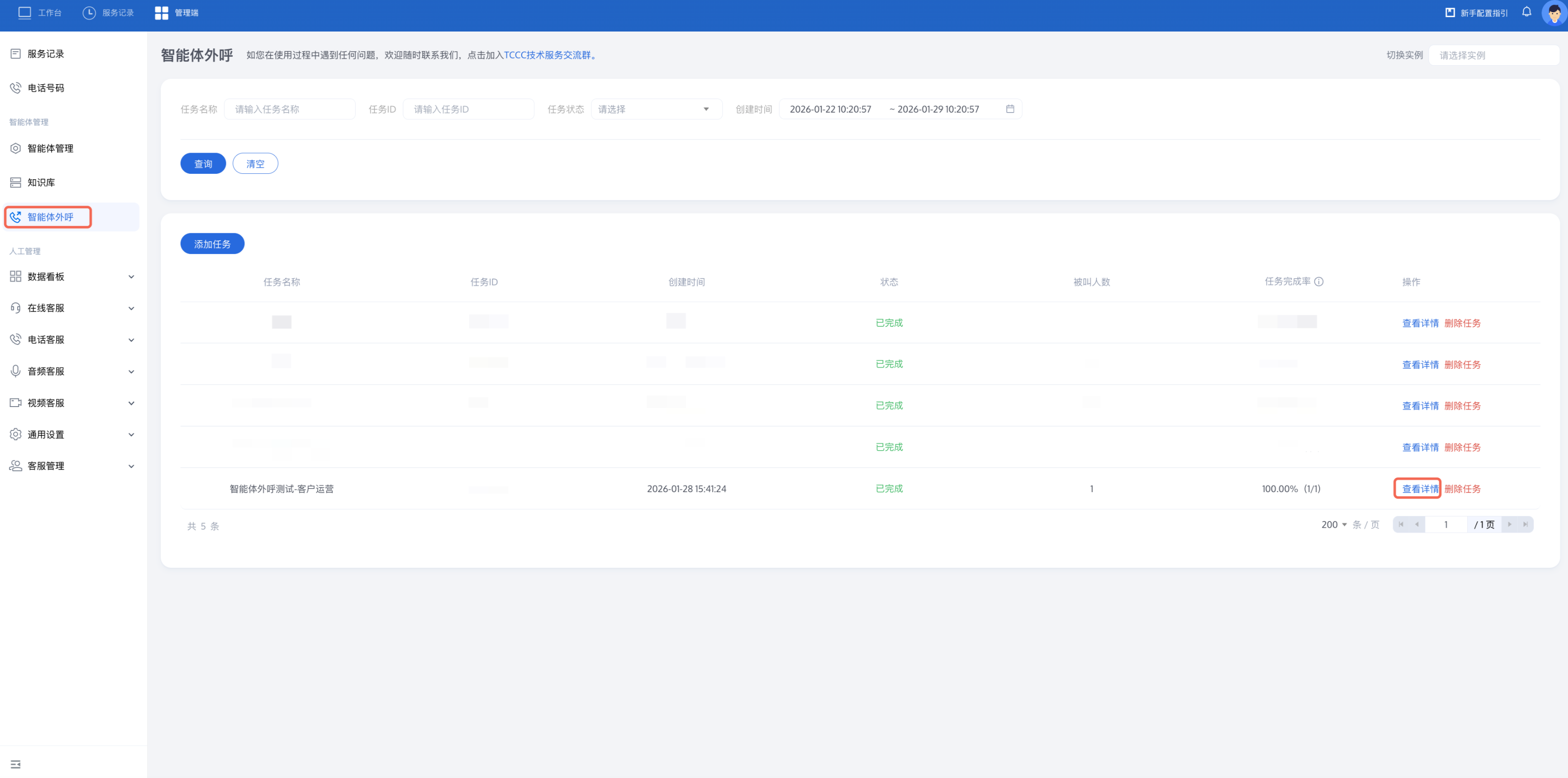 1. 创建完客户运营外呼智能体后,您可以根据业务需要创建外呼任务(创建单次智能体通话 或 创建批量自动外呼任务)。