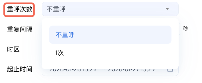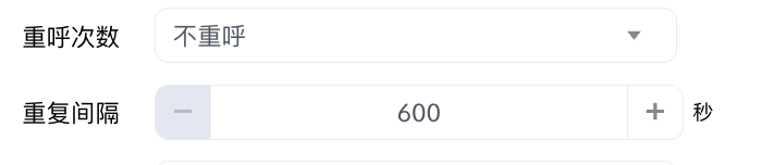 重复间隔:若选择重呼,您可以设置重呼的时间间隔。
