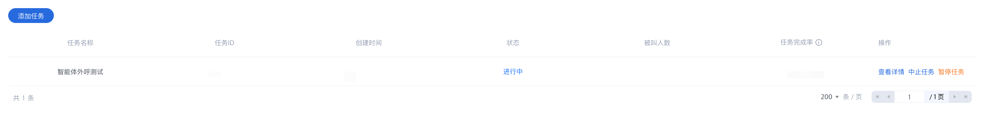 当创建完智能体外呼任务后,您可以在此处进行查看和编辑任务。通过状态栏,您可以查看该任务当前状态: