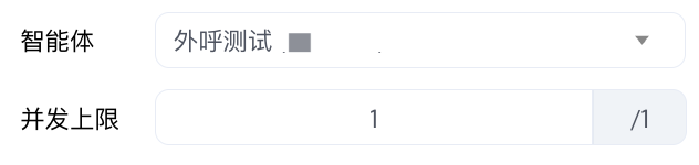 智能体选择下方会展示并发上限设置框,您可以设置本任务的外呼并发数,并发上限由您的语音智能体套餐决定。