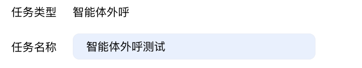设置任务名称:您可以设置智能体外呼任务名称(例如:智能体外呼测试)。