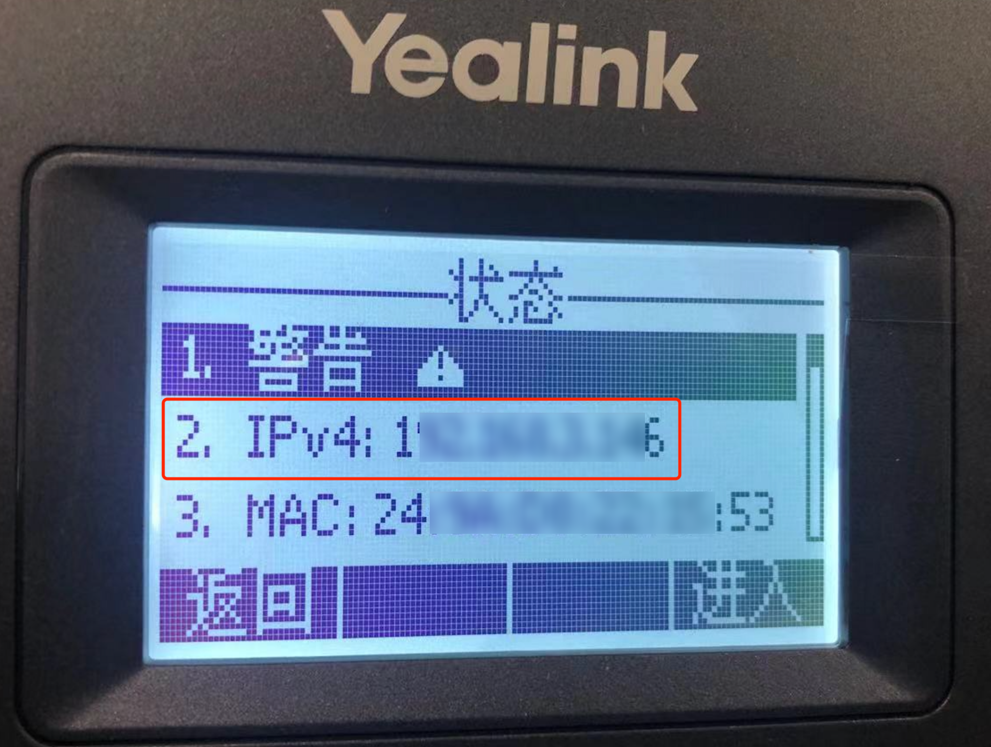 :在话机主页单击菜单 > 状态,获取“内网 IP 地址”。